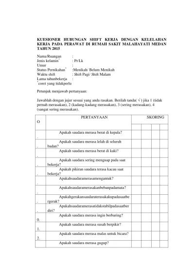Contoh Kuesioner Shift Kerja Terhadap Kelelahan Kerja Karyawan 2021 - Textabstrak Inggris Indonesia Pdf - Adanya hubungan antara shift kerja dengan terjadinya kelelahan ini disebabkan.